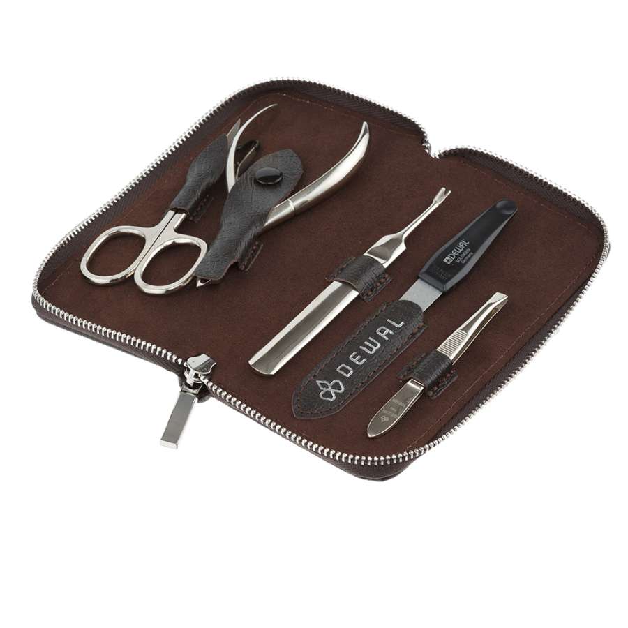 Маникюрный набор DEWAL, 5пр. Футляр: натуральная кожа, цвет коричневый