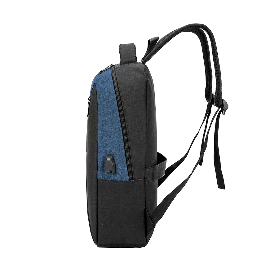 На передней стенке большой диагональный карман на молнии с открытым карманом внутри. Сбоку два открытых кармана и USB-разъем с проводом для подключения внешнего аккумулятора.
