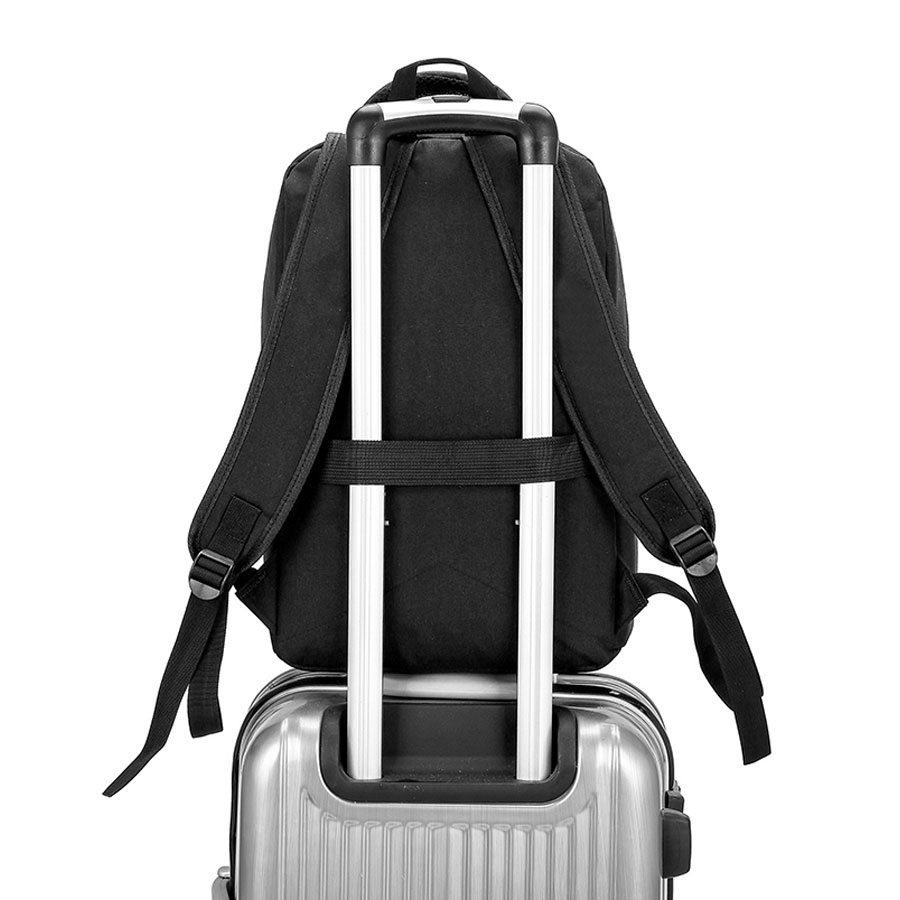 Специальная накладка для чемодана на задней стенке делает этот рюкзак незаменимым спутником для путешествий.