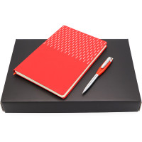 Подарочный набор в стильной цветной картонной коробке черного цвета (крышкой-дно). Внутри на аккуратном ложементе располагаются ежедневник А5 и элегантная металлическая ручка - флешка емкостью 64 ГБ.