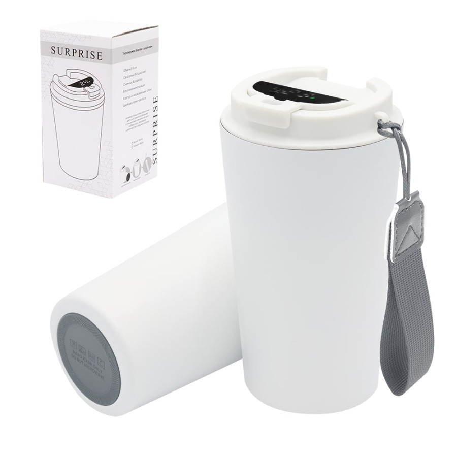 Термокружка Surprise To Go с индикатором, белая/серая