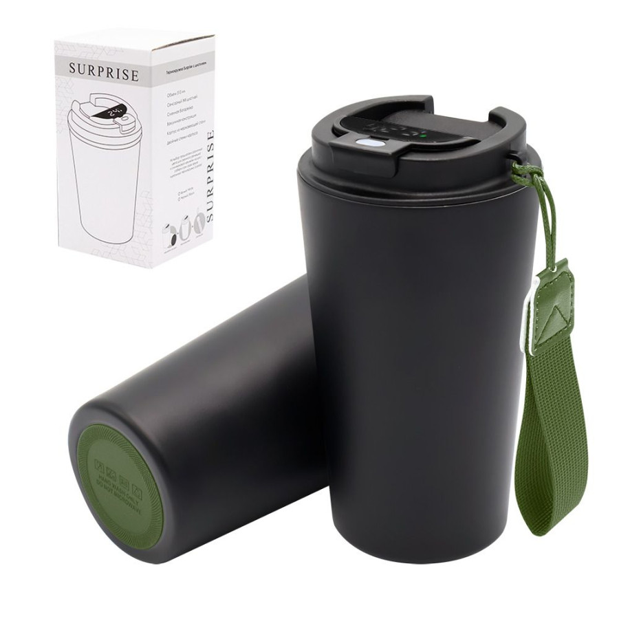 Термокружка Surprise To Go с индикатором, чёрная/хаки