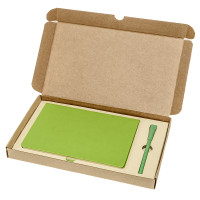 Подарочный набор в стильной картонной коробке бежевого цвета. Внутри на аккуратном ложементе располагаются ежедневник недатированный в твердом переплете и картонная ручка с колпачком.