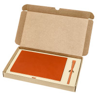 Подарочный набор в стильной картонной коробке бежевого цвета. Внутри на аккуратном ложементе располагаются ежедневник недатированный в твердом переплете и картонная ручка с колпачком.