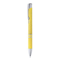 Кнопочная ручка из пшеничного волокна и АБС с серебряными деталями. Джамбо-заправка синими чернилами. Пшеничное волокно и ABS.