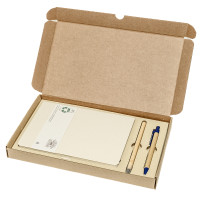 Подарочный набор в стильной картонной коробке бежевого цвета. Внутри на аккуратном ложементе располагаются ежедневник недатированный в твердом переплете и картонная ручка с колпачком.