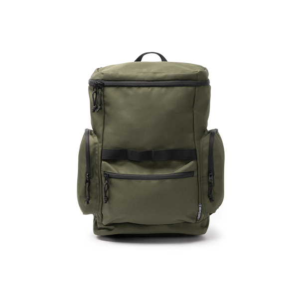 Рюкзак изготовлен из переработанного ПЭТ плотностью 600D с верхним отверстием. Имеет внешние боковые и передние карманы на молнии с черными язычками. Предусмотрены различные точки крепления для различных аксессуаров. Внутри имеется эластичное отделение для переноски устройств размером до 30 см. Мягкая спинка и ручки для большего комфорта.