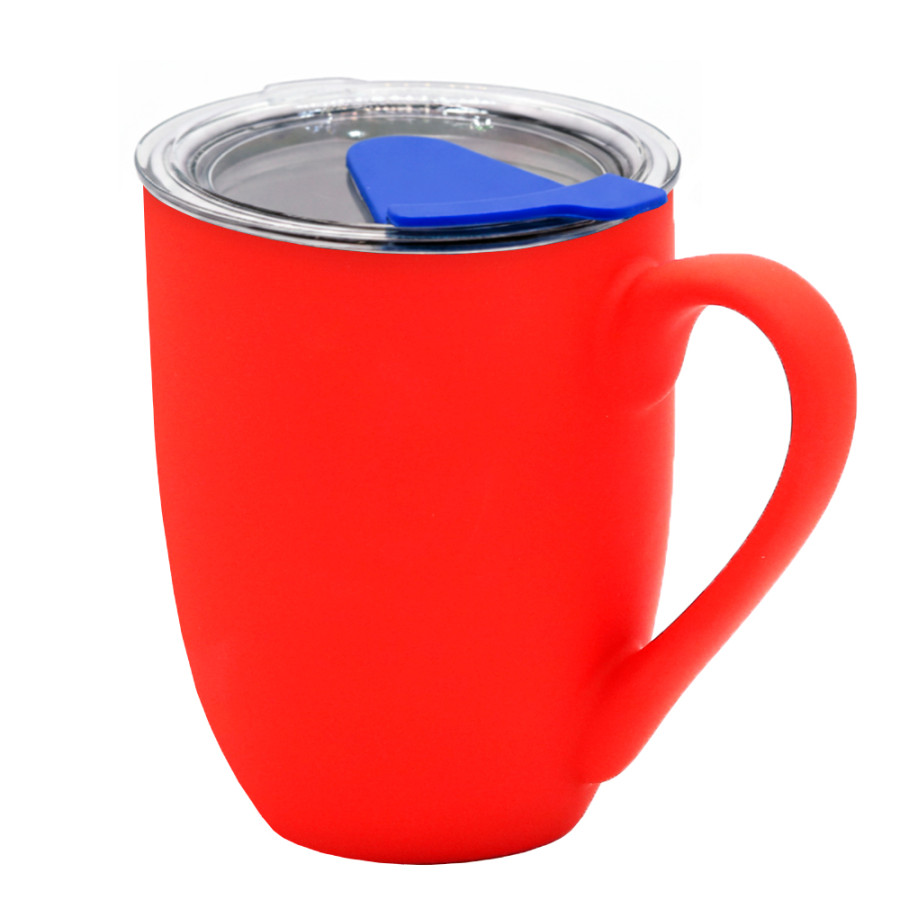 Кружка с крышкой Velvet Duo, софт-тач, красная/синяя