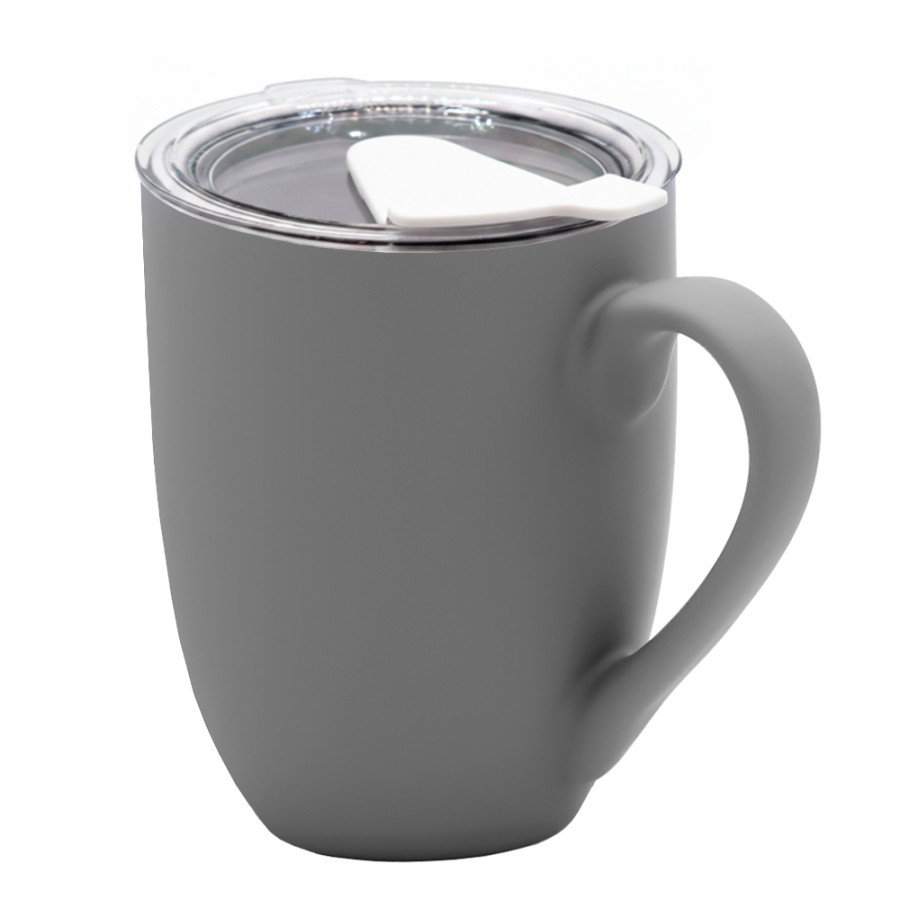 Кружка с крышкой Velvet Duo, софт-тач, тёмно-серая/белая