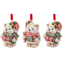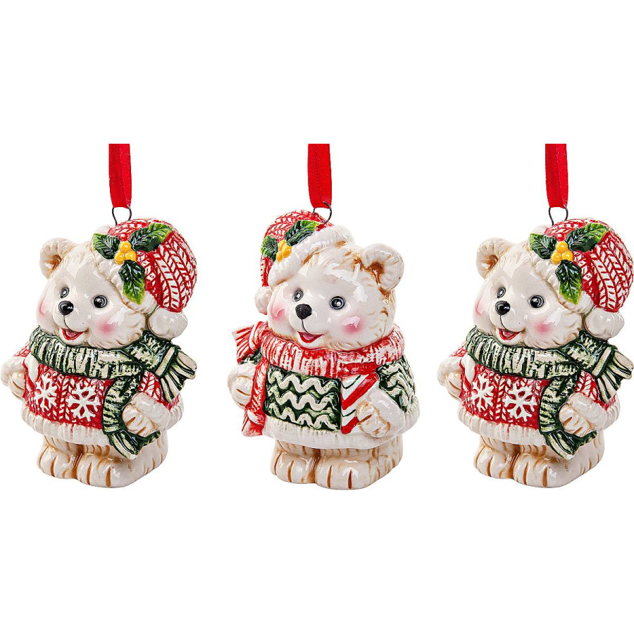 Делать друг другу подарки под Новый год – приятная традиция. Среди ваших близких есть любители сувенирных медведей? Тогда набор белых украшений "Медвежата" Mister Christmas станет просто идеальным подарком. Набор состоит из двух очаровательных сувениров. Милые медвежата высотой 8 см так и притягивают к себе взгляды окружающих. Маленькие фигурки медведей выполнены в белом цвете. Яркие черные глазки и розовый румяней на щечках улыбчивых медвежат сразу поднимают настроение. Дизайнеры Mister Christmas заботливо нарядили медвежат в теплый зеленый шарф, красную шапочку с ярким желтым цветком и красный свитерок с жаккардовым рисунком. Сверху у каждого украшения сделано специальное колечко для нити, чтобы его можно было повесить на праздничную елку. Новогодние украшения из коллекции «Рождественские узоры» изготавливаются из керамики. Материал экологически чистый и безопасный. Набор белых украшений "Медвежата" Mister Christmas продается в фирменной коробке. Яркая коробка, выполненная с том же стиле, надежно сохранит сувениры. Дарить такой набор из белых медвежат – одно удовольствие.