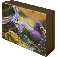 Подарочная складная коробка от Mister Christmas наполнена новогодним духом и задает праздничное настроение. Сочетание золотистых, фиолетовых и зеленых тонов в дизайне придает упаковке изысканный утонченный вкус. А спокойный ненавязчивый рисунок и логотип бренда делает коробку стильным завершением новогоднего подарка. Друзья, клиенты и коллеги по достоинству оценят такой знак внимания.