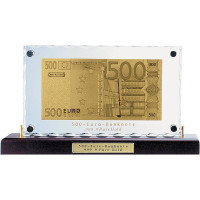 Перед вами настольный вариант точной копии банкноты в 500 евро, выполненной из сусального золота 999, 9 Такой набор является одновременно и глубоко символичным, и универсальным подарком.