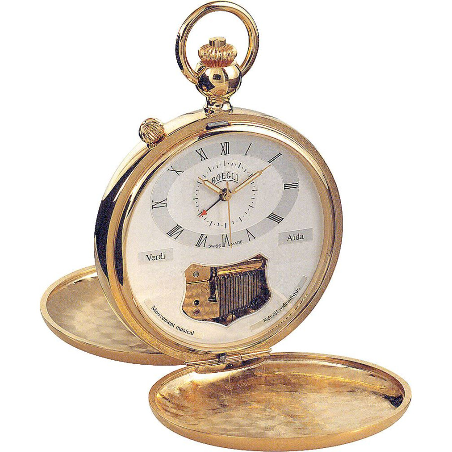 Ход карманных часов BOEGLI регулируется швейцарским механизмом с ручным заводом, оснащенным семнадцатью рубиновыми подшипниками. Скелетонизированный циферблат демонстрирует работу гребенчатого музыкального механизма, проигрывающего классическую мелодию.
