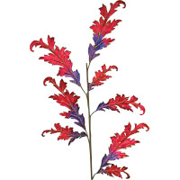 Новогодний праздник – волшебная пора. Все вокруг преображается: яркие краски огней и тончайшие морозные узоры на стекле. Украшения тоже не остаются в стороне. Фиолетово-красное новогоднее украшение «Ветка» Mister Christmas сочетает в себе тонкие линии и блестящее оформление. Новогодняя ветка состоит из трех листочков, соединенных между собой. Немного вытянутые дубовые листочки выполнены в очень нежном фиолетово-красном цвете. Дизайнеры подчеркнули изящную форму и каждую прожилку листочка, благодаря чему они выглядят как настоящие. Этот новогодний сувенир представляет коллекцию новогодних украшений «От кутюр». Каждое украшение этой коллекции уникально, так как выполнено вручную. Украшения выполнены из полимерных материалов, ткани. Для придания новогоднему украшению яркости мастера Mister Christmas использовали блестки и бисер. Высота новогоднего украшения – 60 см. Каждый сувенир сопровождается специальной коробкой. По вашему желанию украшение может быть персонализировано: логотип или пожелание наносится на специальную открытку. Фиолетово-красное новогоднее украшение «Ветка» Mister Christmas послужит прекрасным дополнением праздничного интерьера.