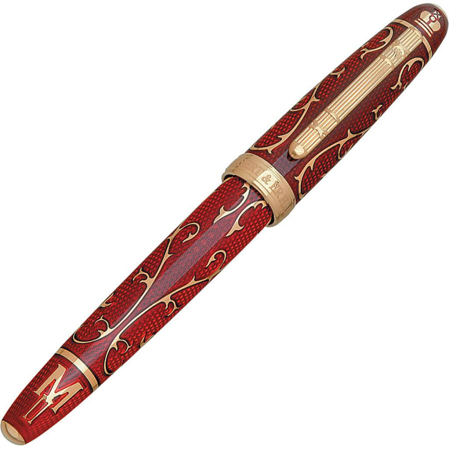 Серия ручек “Faberge” от Bossert& Erhard – дань памяти искусству одного из лучших мастеров ювелирного дела всех времен и народов. Впитав в себя единственный и уникальный стиль, имя которому – Фаберже, в этих ручках легко узнаются характерные черты изделий B& E – глубокое рустирование корпуса и колпачка из массива серебра в сочетании с многослойным лаковым покрытием, технология которого доведена фирмой практически до совершенства. Корпус, колпачок и зажим ручек выполнены из чистого серебра 925 пробы, украшены рельефным гравированным орнаментом и покрыты лаком. Первичное лакирование деталей производится в 20 слоев, на завершающем этапе каждая деталь покрывается дополнительными 30-40 слоями лака с последующим шлифованием и зеркальной полировкой. Перья ручек выполнены из золота 18К с частичным покрытием палладием.