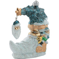 Синие елочное украшение "Месяц" Mister Christmas ярко и необычно украсит Ваш интерьер. Высота изделия 120мм. Внешний вид игрушки достаточно оригинален: это месяц в облике Деда Мороза с колпаком-елкой на голове, который венчает золотистая звезда. Окладистые борода и усы плавно переходят в снежную равнину на которой стоит небольшой домик. Через трубу в домик лезет Санта. К колпаку месяца с помощью небольшого колечка прикреплена голова еще одного Деда Мороза. Поверхность сувенира глянцевая за исключением белых деталей, которые покрыты блестками. Игрушка отличается разнообразным рельефом деталей. К елочному украшению прикреплена золотистая фактурная петелька и нить в тон. Полимерный материал, из которого изготовлен сувенир, не содержит вредных примесей и не загорается. Так же полимер невероятно прочен. При ударе о твердую поверхность или падении на пол игрушка останется целой. Украшение будет смотреться гармонично как на ветках ели, так и в новогодних композициях в качестве центрального элемента или как самостоятельное интерьерное украшение. Изделие отвечает современным требованиям и прошло экологический контроль. Выпущено ограниченной серией и только под маркой Mister Christmas. Упаковано в подарочную упаковку.