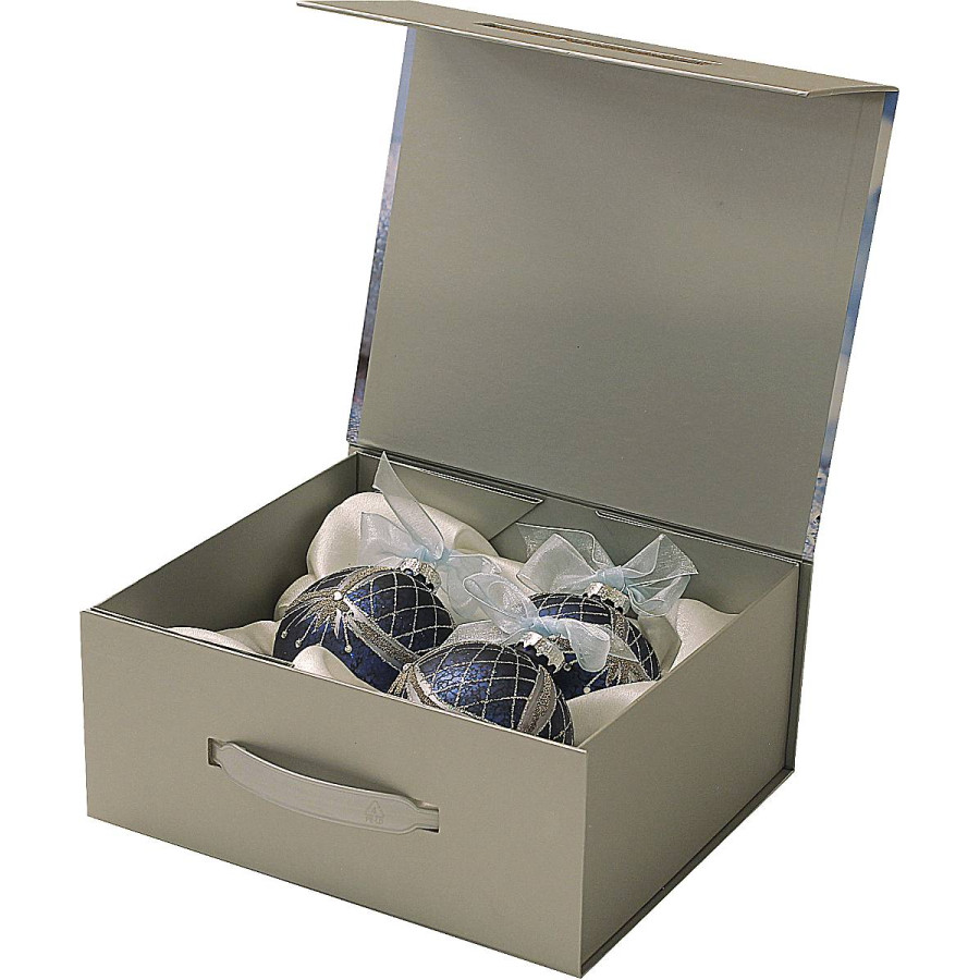 В новогодний праздник каждый ищет красивые подарки и ожидает чего-то необычного взамен. Набор из 3 коллекционных новогодних украшений непременно удивит всех. Все украшения из коллекции Imperia Collection привлекает богатством красок. Этот набор украшений выполнен в королевских цветах – бархатный синий и серебряный. На синем фоне дизайнеры сделали золотистый орнамент. Все украшения этого набора имеют форму яйца. Два коллекционных украшения высотой 5 см, одно – 13 см. Для изготовления набора коллекционных украшений в мастерской Mister Christmas используют качественное стекло. Несмотря на толщину стекла, украшения все-таки весьма хрупкие. Сверху каждого изделия сделано специальное крепление для нити. Дизайнеры украсили его бантом из красивой ленточки золотистого цвета. Каждый набор из 3 коллекционных украшений сопровождается специальной подарочной упаковкой. Прочная коробка в приятной золотой гамме с фирменным логотипом не только надежно сохраняет украшения из стекла, но и делает их еще более торжественными. Такого поистине королевского подарка достойны ваши самые близкие и любимые. Набор украшений из стекла Imperia Collection уже ждет Вас в магазине.