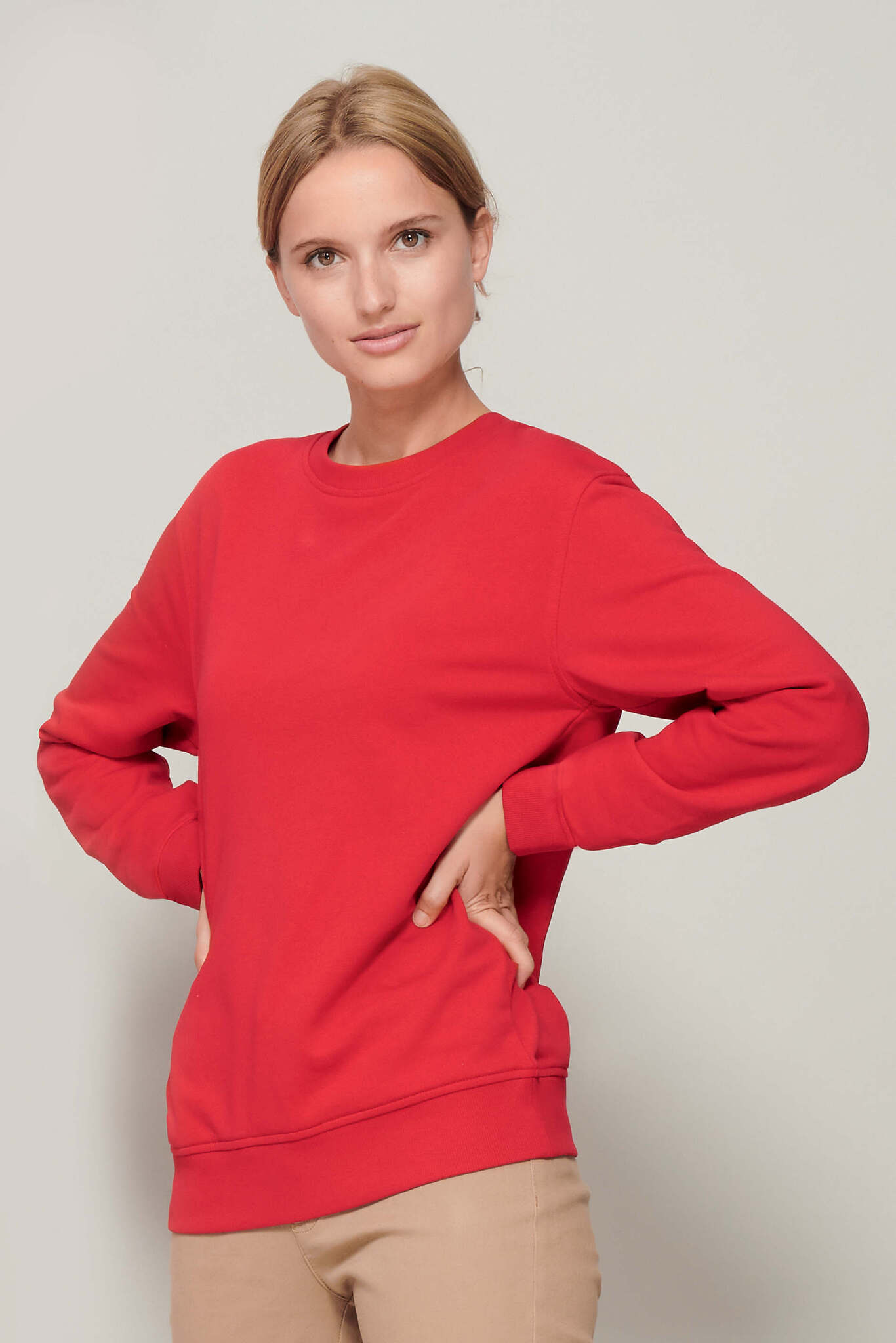 ФУТЕР (TERRY) 280, 80% органический хлопок - 20% переработанный полиэстер, 3 нити. С внутренней стороны футерная нить (French terry). Внешняя сторона 100% органический хлопок. Втачные рукава, ворот и низ изделия обработаны резинкой 2х2. Кроеный трикотаж, укрепляющая тесьма по вороту. Нашитый полукруг из джерси с внутренней стороны ворота