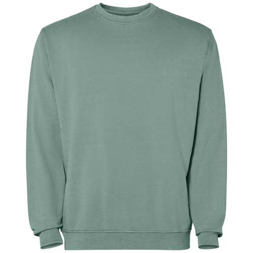 Свитер унисекс с эффектом выцветшей, потертой ткани. Воротник, манжеты и подол в рубчик 2x1 в тон. Усиленные швы на манжетах, подоле, поясе и проймах. Перекрывающий стежок тон в тон на горловине.