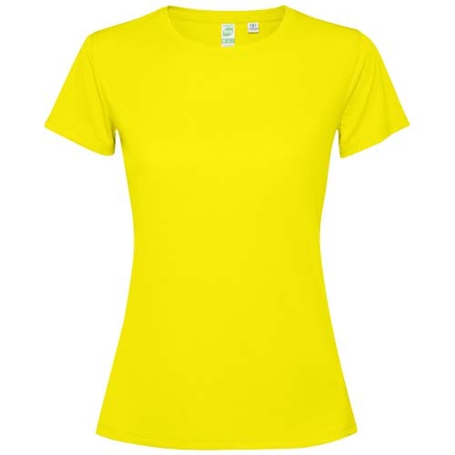 Приталенная футболка из технической ткани с короткими рукавами для женщин. Воротник со швами в цвет. Подол сзади немного длиннее переда. Боковые швы смещены вперед.