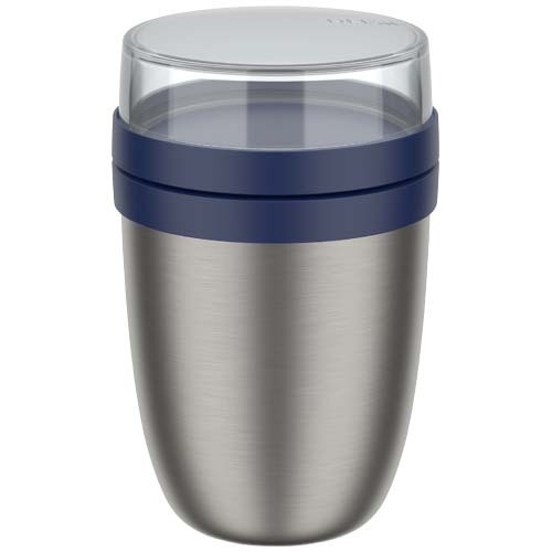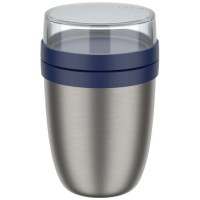 Герметичный пищевой контейнер с двумя раздельными отделениями, позволяющими хранить различные продукты отдельно друг от друга. Оба контейнера имеют отдельную крышку, чтобы ингредиенты не смешивались. Еда останется горячей в течение 6-8 часов и холодной в течение 12 часов. Объем верхнего прозрачного контейнера составляет 200 мл. Емкость нижнего контейнера составляет 500 мл. Изготовлен из прочного материала, внешняя часть контейнера остается холодной и сухой. Рекомендуется ручная мойка. Пластиковые части крышки можно мыть в посудомоечной машине.