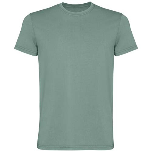 Футболка с коротким рукавом для мужчин. С эффектом выцветшей, потертой ткани. Круглый вырез горловины с резинкой 1x1. Перекрывающий стежок тон в тон с глянцевой отделкой.