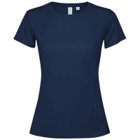 Приталенная футболка из технической ткани с короткими рукавами для женщин. Воротник со швами в цвет. Подол сзади немного длиннее переда. Боковые швы смещены вперед.