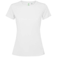 Приталенная футболка из технической ткани с короткими рукавами для женщин. Воротник со швами в цвет. Подол сзади немного длиннее переда. Боковые швы смещены вперед.
