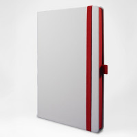 Записная книга формат 14, 5х21 см в линейку 256 страниц, кремовая бумага 70 г сертифицирована FSC. Дополнительно имеются страницы в точку, в клетку, для систематизации проектов, а также листы без разметки с перфорацией. Печать в 1+1 цвет, все страницы пронумерованы. Шитый блок Форцазы из черной дизайнерской бумаги 140 гр FSC. Белая обложка из высококачественного кожзама от ведущего итальянского производителя. Ляссе в тон обложки. Резинка 10 мм в тон обложки.