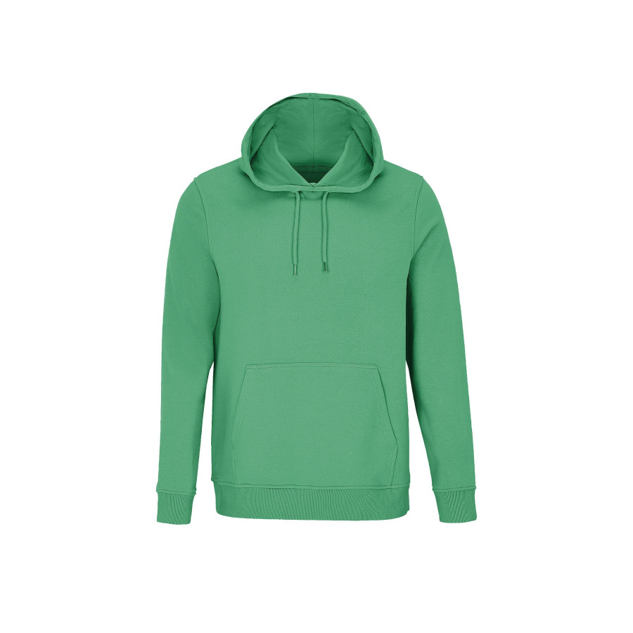 Шитый трикотаж, Втачные рукава, Манжеты и нижняя часть на трикотажной резинке 2x2, Карман-кенгуру, Полумесяц и окантовка из джерси на горловине, Капюшон на подкладке из джерси, Завязки с металлическими наконечниками и люверсами