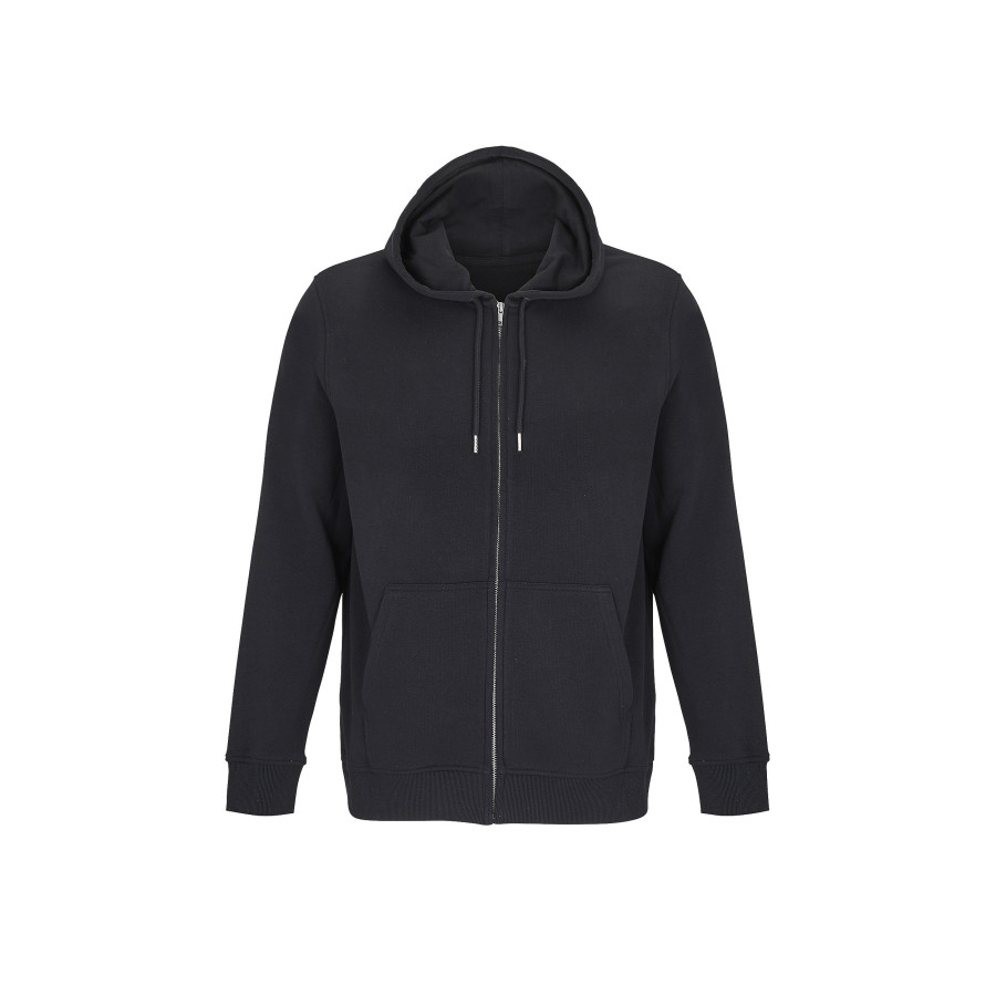 Шитый трикотаж, Втачные рукава, Манжеты и нижняя часть на трикотажной резинке 2x2, Карман-кенгуру, Капюшон на подкладке из джерси, Завязки с металлическими наконечниками и люверсами, Основная застежка на молнии под планкой, Металлические молния и бегунок, Полумесяц и окантовка из джерси на горловине