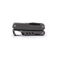 Многофункциональный инструмент 11-в-1 в компактном корпусе из закалённой нержавеющей стали. Включает: плоскогубцы и острогубцы, кусачки, инструмент для зачистки кабеля, нож с фиксатором лезвия, пила по дереву с фиксатором лезвия, крестовая и плоская отвёртки, открывалка для бутылок, консервный нож, карабин. Поставляется с чехлом для крепления на поясе.