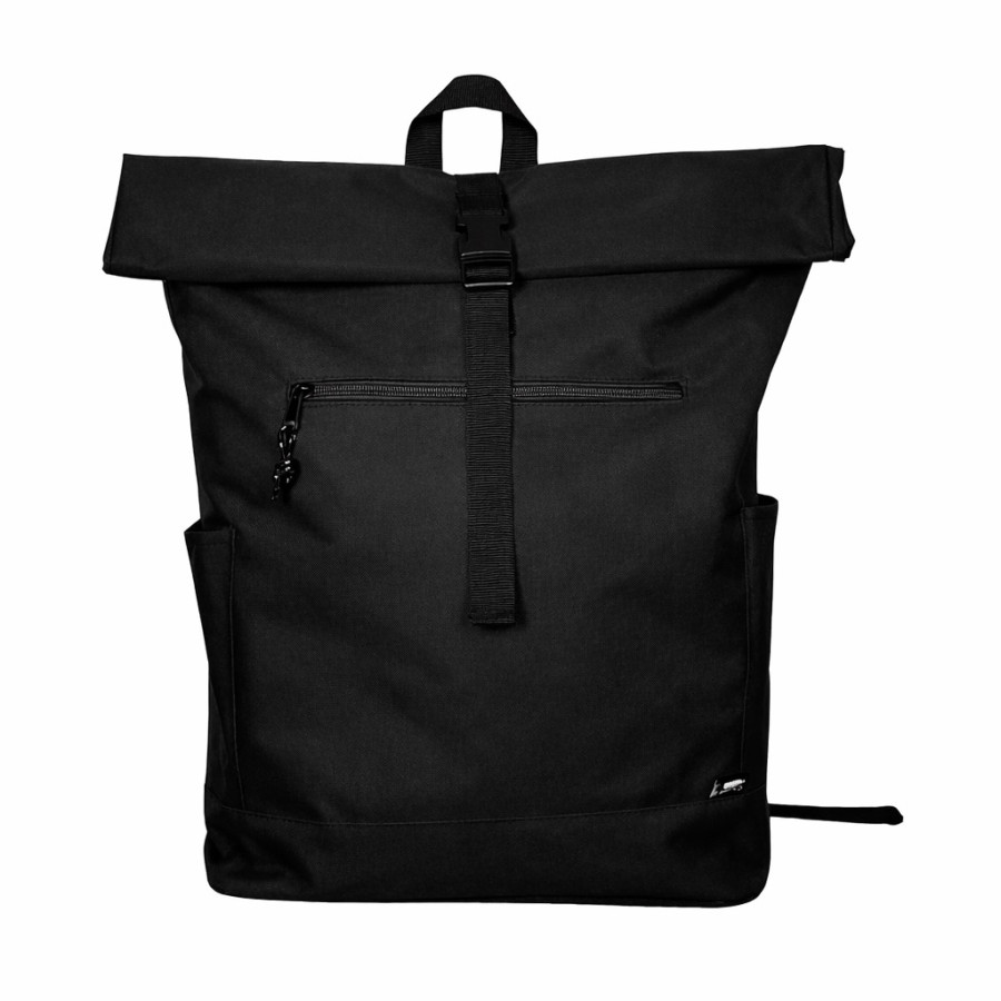 Рюкзак из переработанного пластика (RPET). Система roll-top скручивания верхней части позволяет регулировать объём и обеспечивает дополнительную защиту содержимого от влаги и пыли. Имеет фиксацию основного отделения на застёжке, вместительное внутреннее пространство с мягким карманом для ноутбука или планшета, передний карман на молнии, боковые карманы для бутылки и мелочей. Выполнен из прочного износостойкого полиэстера 600D. Размер 32 x 13 x 45-60 cм