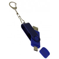 OTG_2in1_TC_031 Флеш-накопитель 2 в 1 поворотный механизм, c дополнительным разъемом Type-C с одноцветным металлическим клипом, синий.