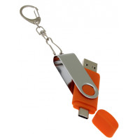 OTG_2in1_TC_030 Флеш-накопитель поворотный механизм, c дополнительным разъемом Type-C, оранжевый.