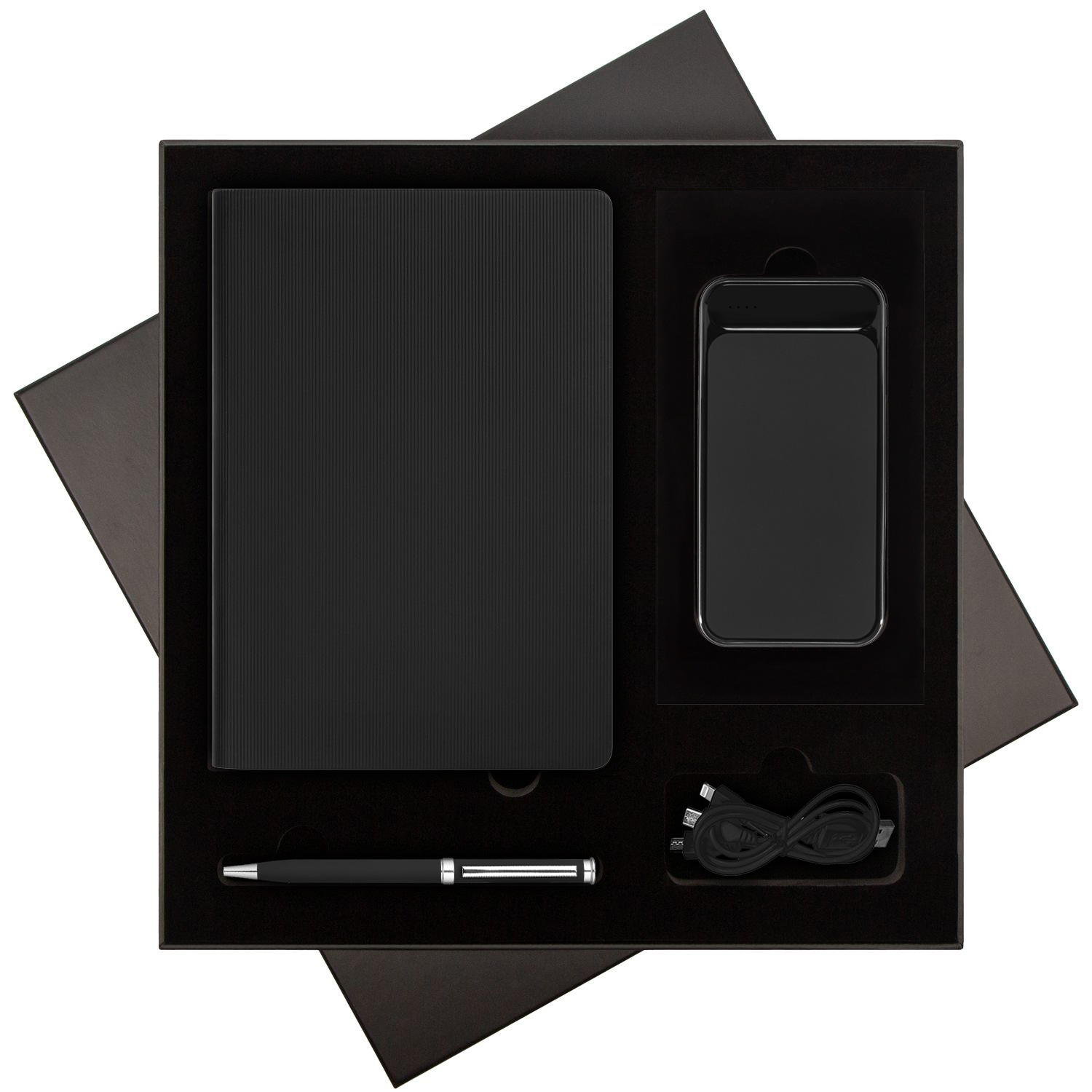 Подарочный набор Rain, черный (ежедневник, ручка, аккумулятор)