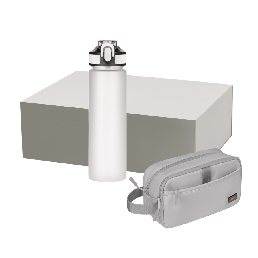 Подарочный набор Boston, Flip, серый (дорожная косметичка, бутылка)