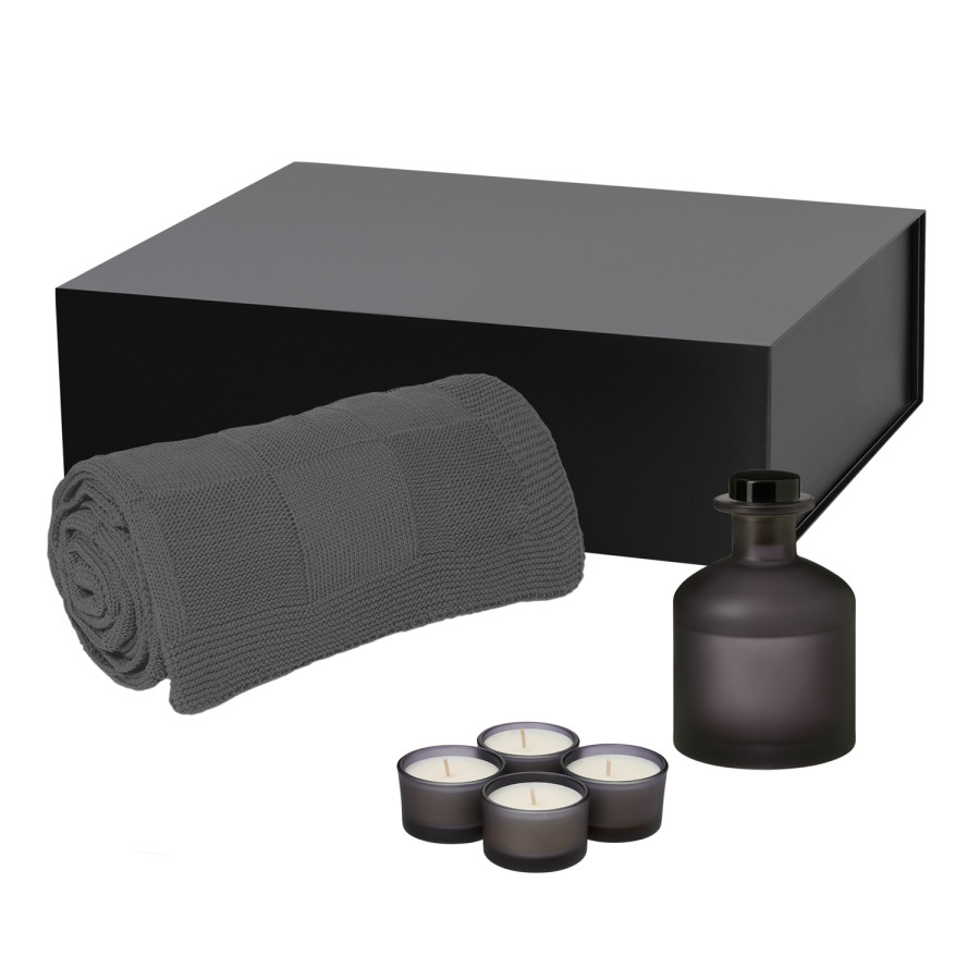 Подарочный набор Sento, Cella, серый (свеча, диффузор, плед)