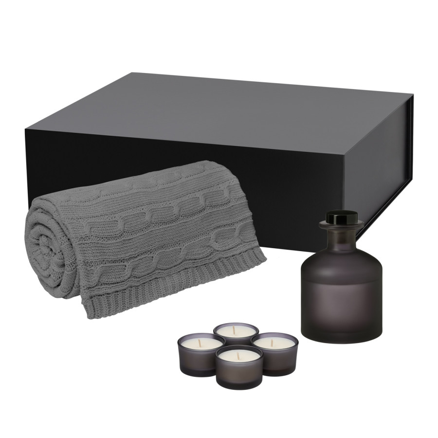Подарочный набор Sento, Fado, серый (свеча, диффузор, плед)