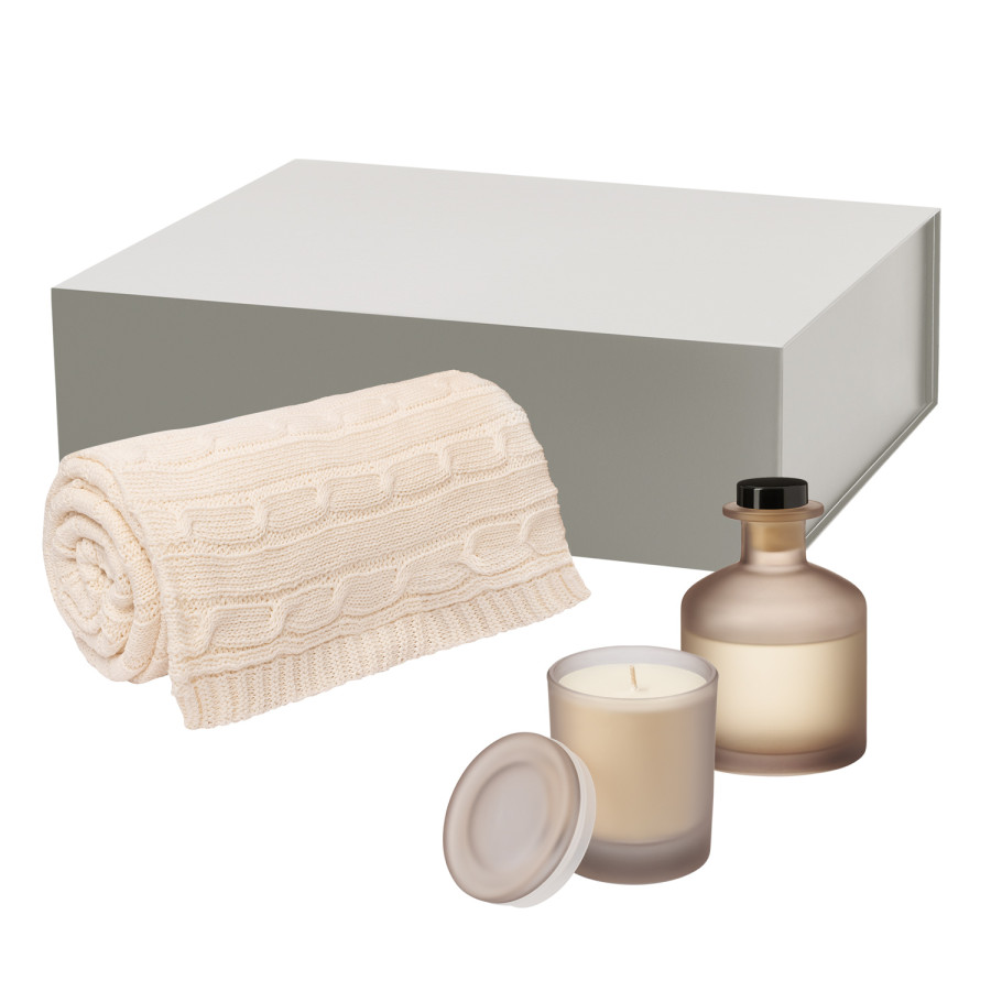 Подарочный набор Mizu, Fado, бежевый (свеча, диффузор, плед)