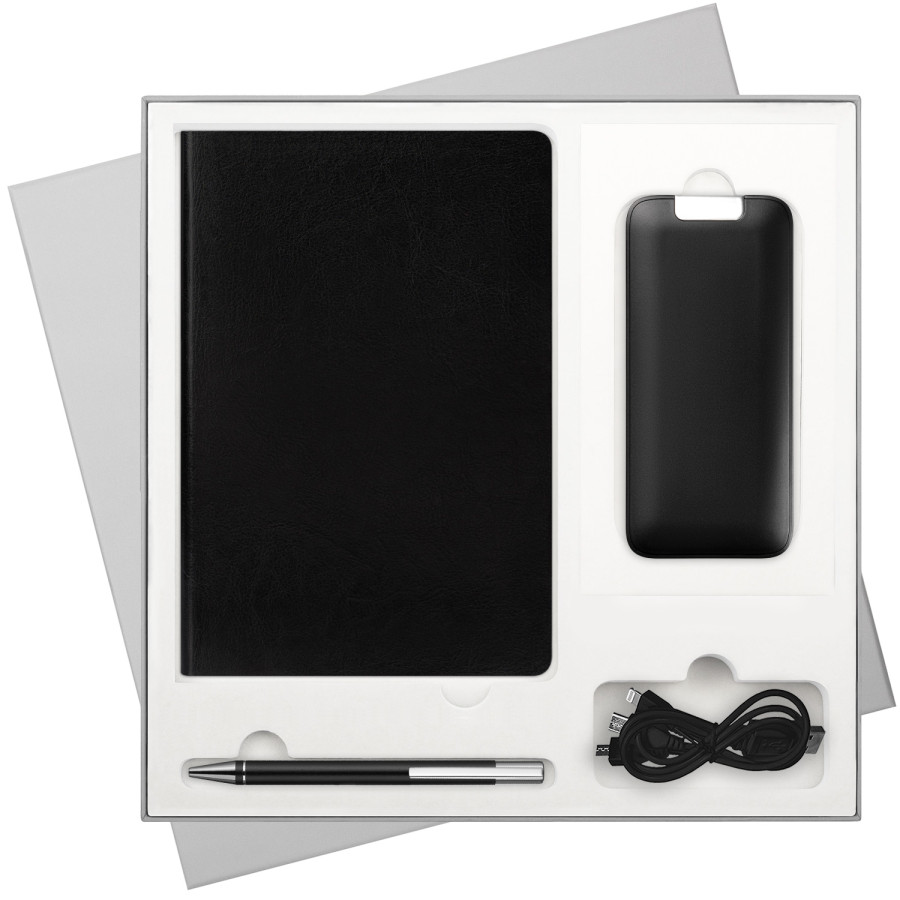 Подарочный набор River side, черный (ежедневник, ручка, аккумулятор)