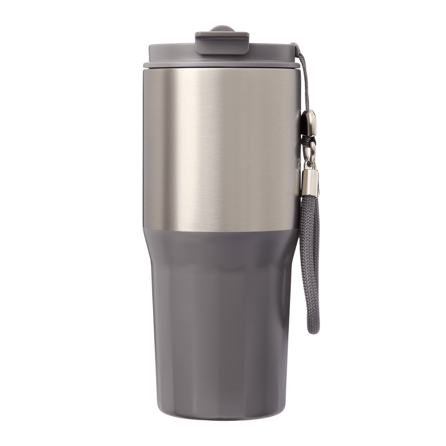 Внутренний слой из пищевой стали 304 марки, которая не впитывает запахи, не окисляется и сохраняет вкус напитка. Внешний корпус надежно защищен 201 сталью с комбинированным покрытием, где матовая текстура сочетается с гладким акцентом. В комплекте идет удобный, прочный и легко снимаемый ремешок, который превращает термокружку в идеальный аксессуар для активного образа жизни.