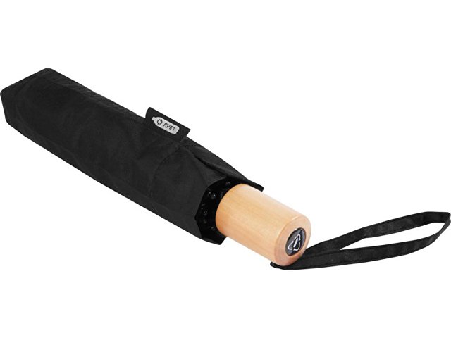 Birgit, складной ветроустойчивой зонт диаметром 21 дюйм из переработанного ПЭТ, черный