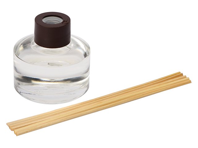 Объем диффузора 50мл. Его будет достаточно для умеренного поддержания аромата в комнате до 15м2 в течение двух месяцев использования. Комплектность: пузырек d5, 8 х 6, 1 см, палочка d0, 3 х 15 см- 5шт