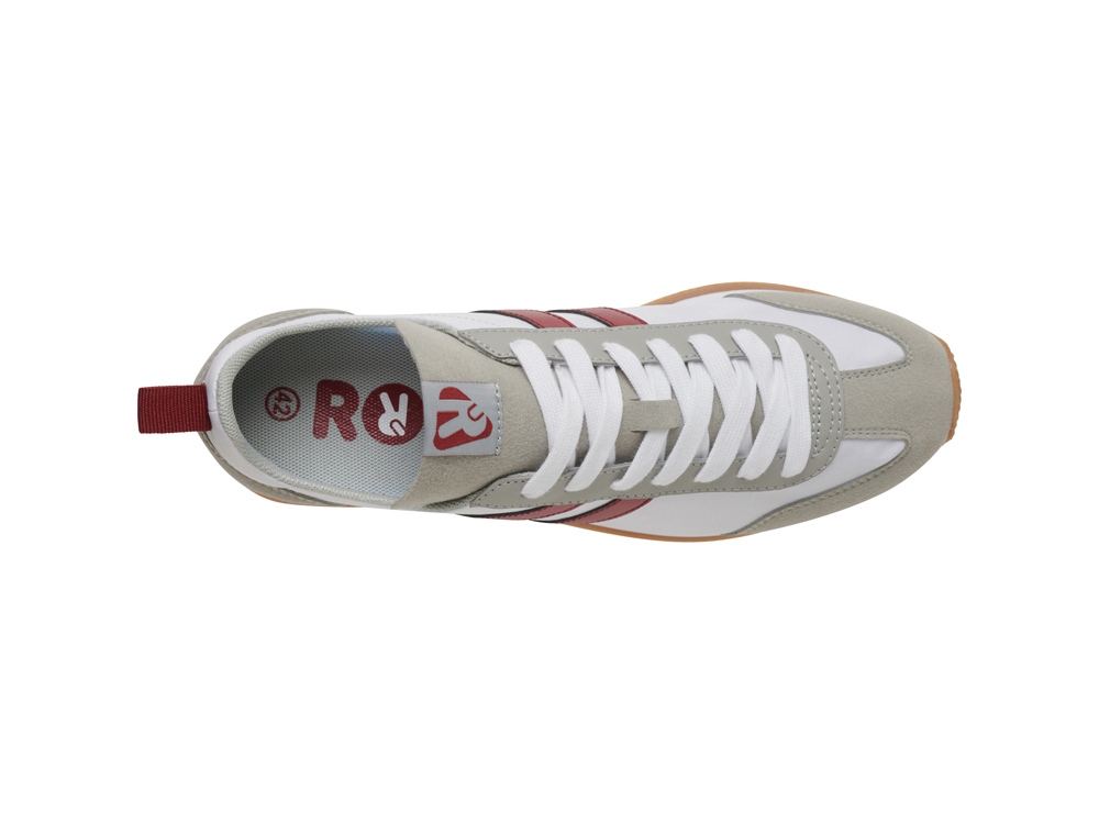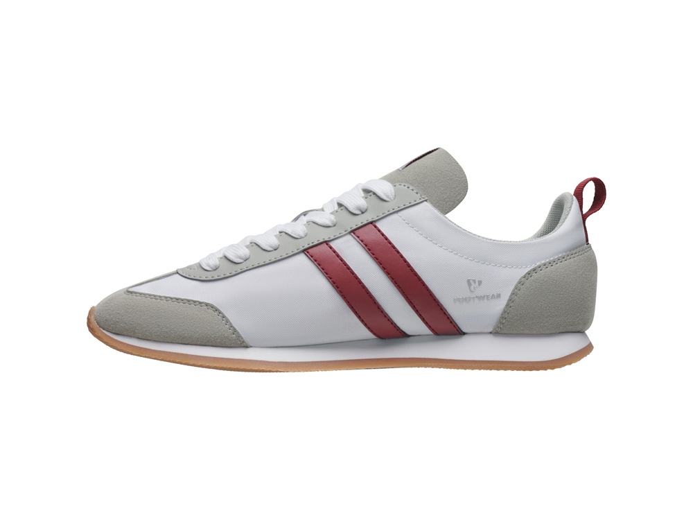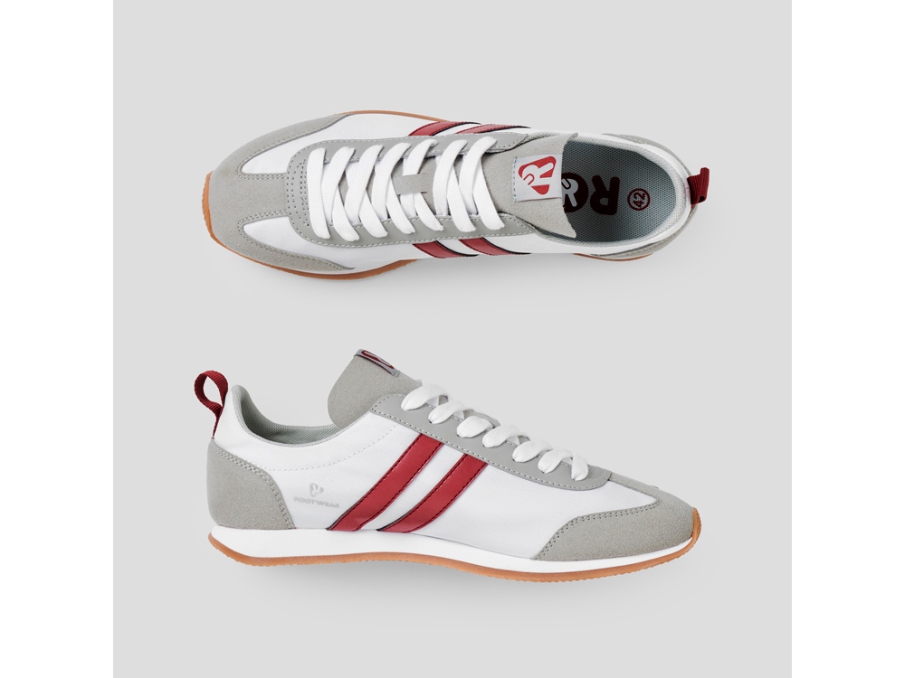 Повседневные кроссовки в стиле ретро с узким носком и резиновой подошвой. Фиксация на ноге с помощью шнурков, декоративные боковые полоски.