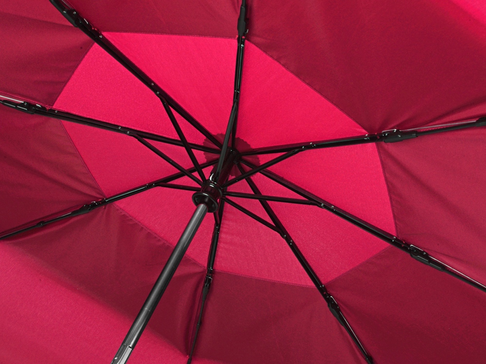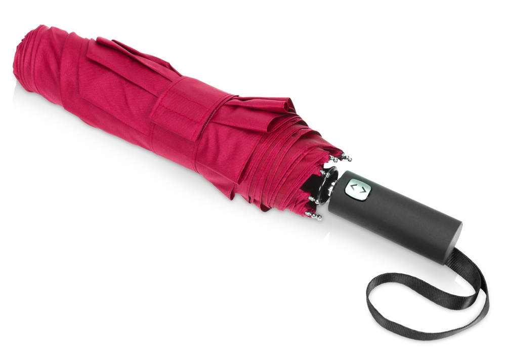 Купол этого складного зонта-автомата состоит из двух полотен и имеет большой диаметр 127 см. Прочный каркас и спицы из стекловолокна устоят при порывах ветра. Благодаря этому зонт служит надежным укрытием в самый сильный дождь. Закрывается в 3 сложения. Ручка обработана мягким покрытием soft-touch. Широкий хлястик для удобства персонализации.