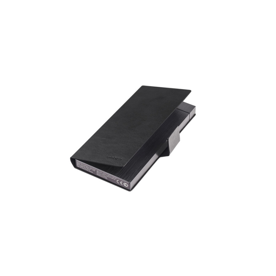 • Чехол-книжка с кожаной фактурой и карманами для банковских карт и визиток.
