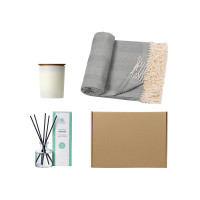 Подарочный набор с пледом, свечой и диффузором, серый