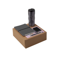Материал: | блокнот- искусственная кожа, бумага, ручка - металл с поверхностью soft-touch, термокружка - кружка- нержавеющая сталь, крышка- пластик, картхолдер - переработанный полиуретан, открытка - бумага, коробка- картон |