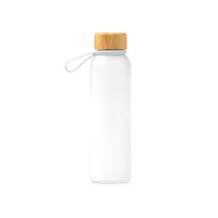 Полупрозрачная бутылка из переработанного стекла. Бамбуковая крышка с держателем. Объём: 500 мл. Поставляется в индивидуальной коробке.